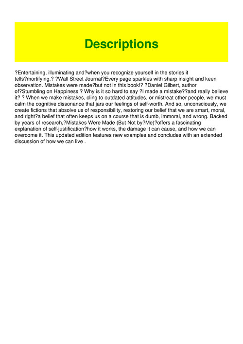 Pdf Mistakes Were Made But Not By Me Why We Justify Foolish